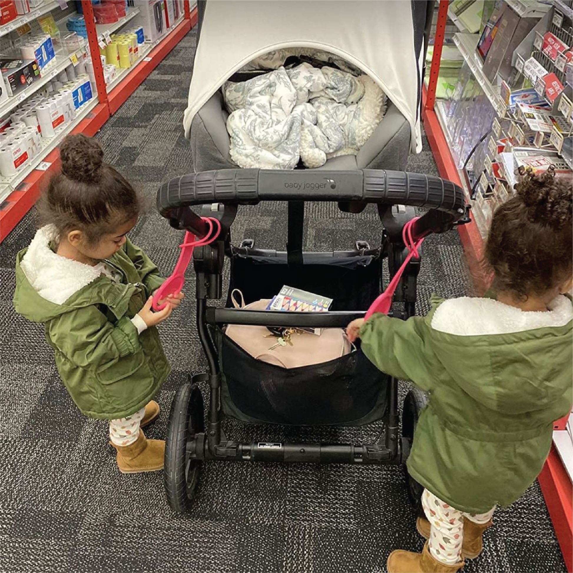 The Tagalongkids 2 pack in Galaxy Grey and Teal. Keep kids close. This stroller accessory provides fun spot for little hands to hold and supports their growing independence. It works on almost any stroller as well as shopping carts, wagons, backpacks and more! Use it while traveling, shopping, at the amusement park or just a walk around the block. Includes 2 Handles (1 Galaxy Gray + 1 Teal)